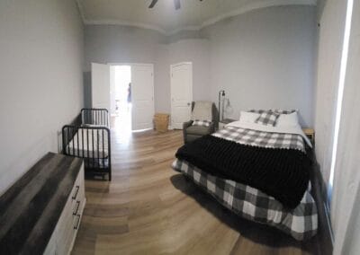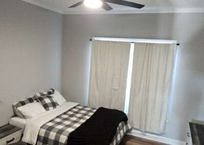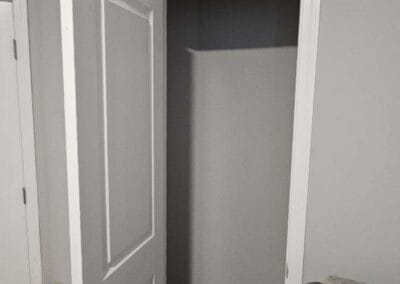 This project redefined the functionality of the open dining room area by transforming it into a private bedroom. New walls were constructed to enclose the space, enhancing both privacy and the overall layout of the home. A custom-built corner closet was added, maximizing storage while seamlessly integrating into the room’s design.